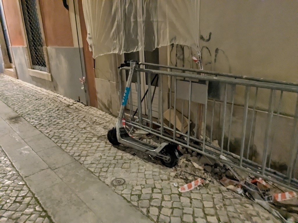 Sobre o ponto 2., vejam o exemplo em anexo uma trotinete que está há vários dias à frente de uma porta e que agora passou a estorvar numa rua estreita onde os moradores precisam de circular com o automóvel para cargas e descargas. Esta em particular nem aparece no mapa, ao contrário das restantes. Eu queria usá-la já que sei que está mal estacionada, mas nem isso posso fazer. É a fotografia tirada junto à grade.